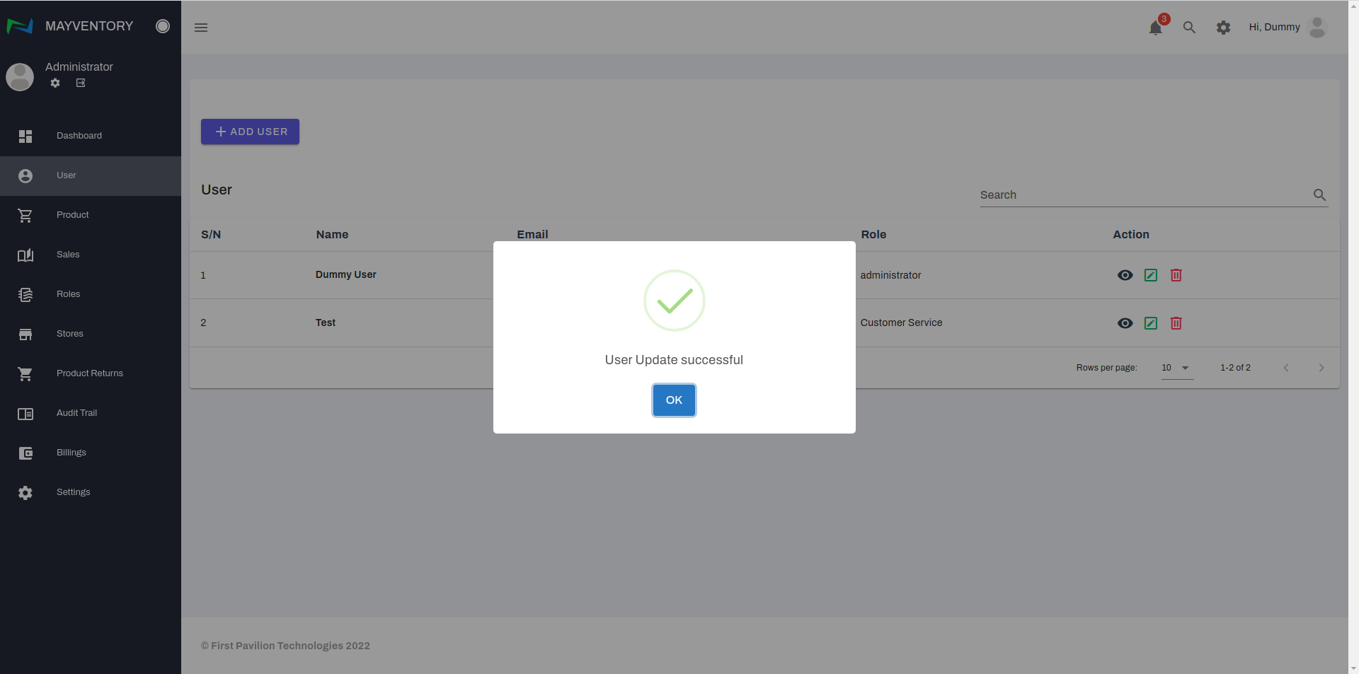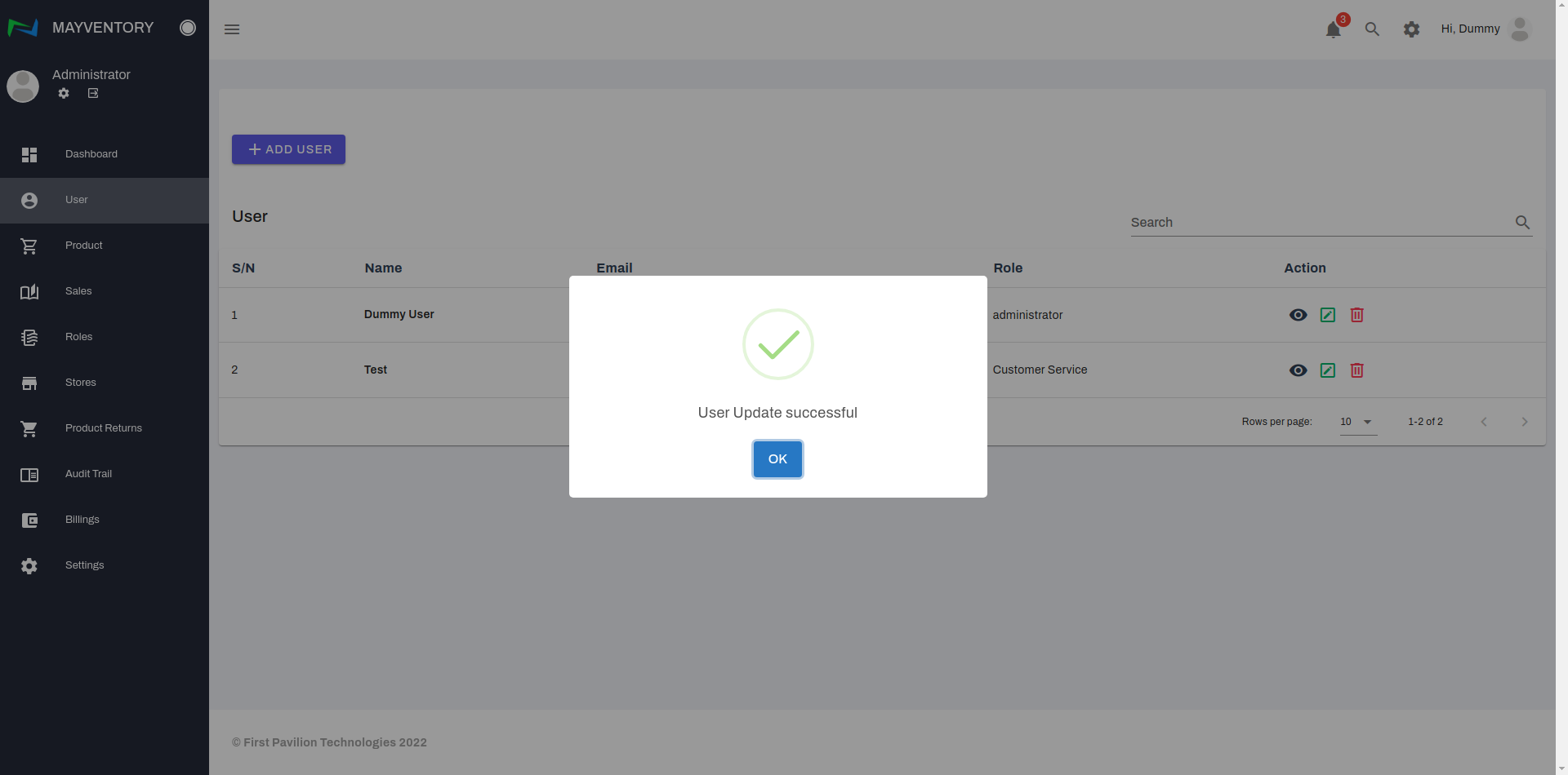 - Click on Update User to save your edit.