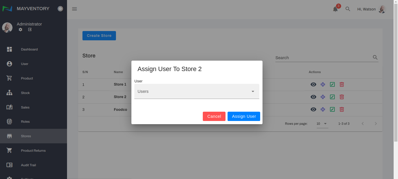 - Choose a user you want to assign the store to and select Assign User to confirm your selection.