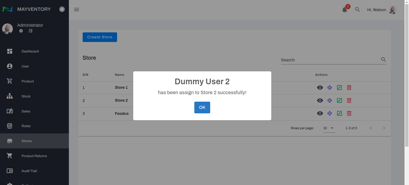 - A confirmation tick pops up like in the image below indicating you have successfully assigned the User to a particular store.