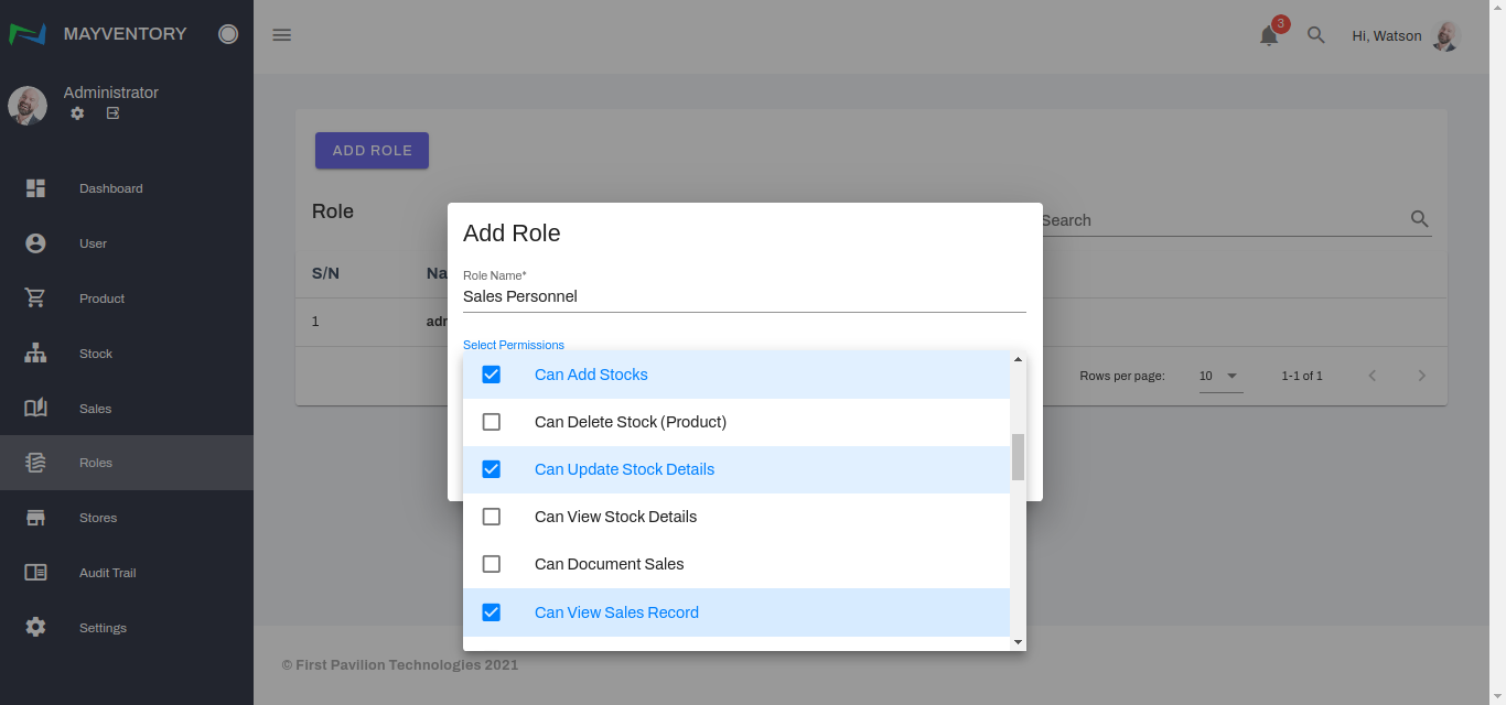 - Assign a role to the user. The role will determine the level of functionalities the user can perform.