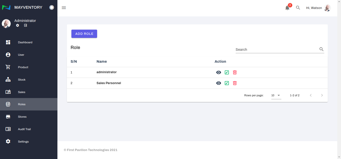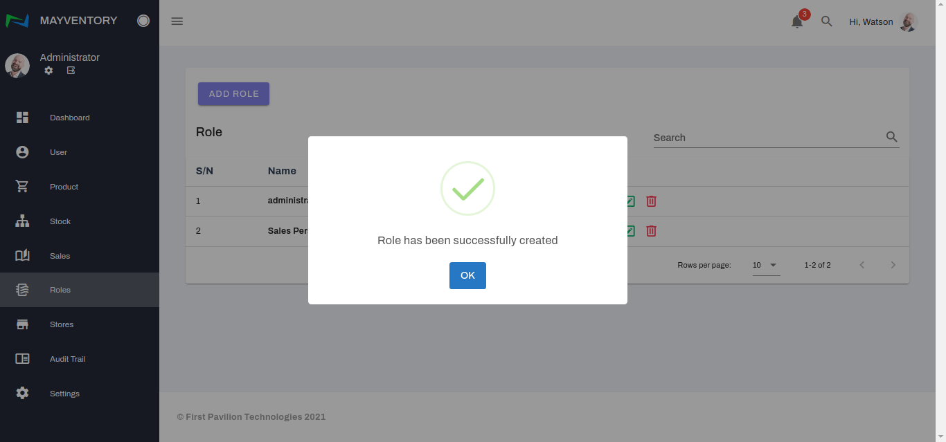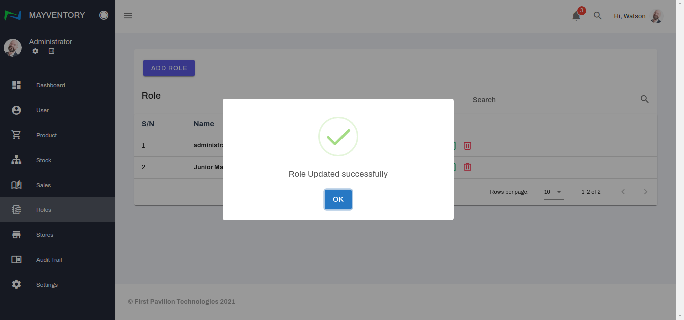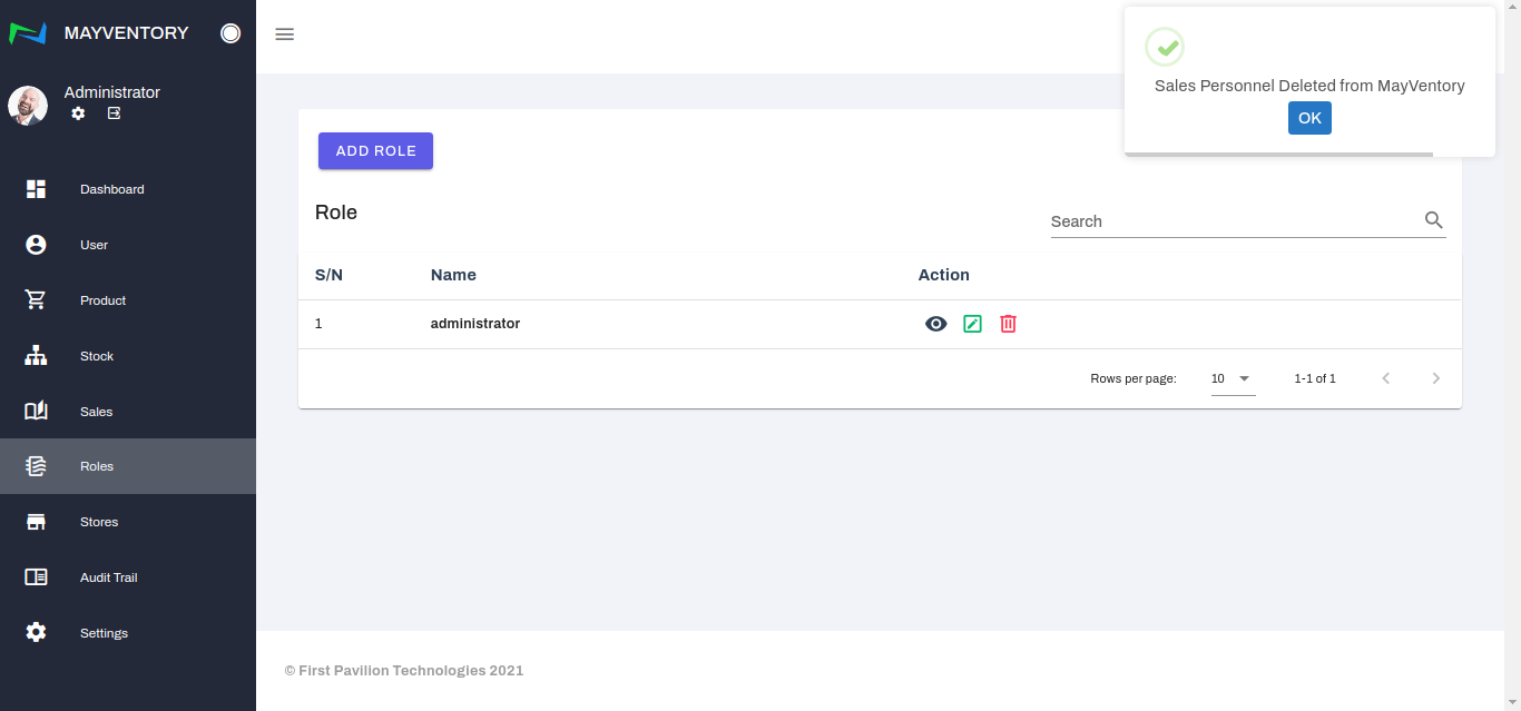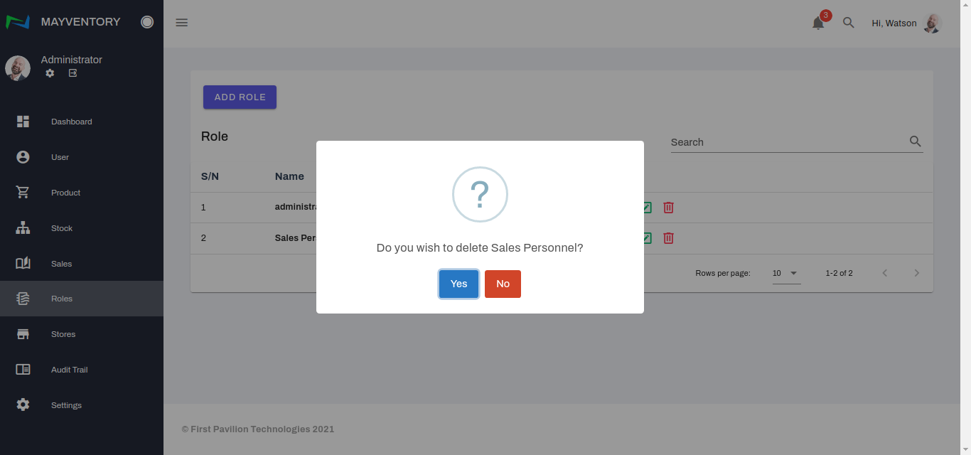 - Click on the Delete icon at the right side of the role you want to delete.