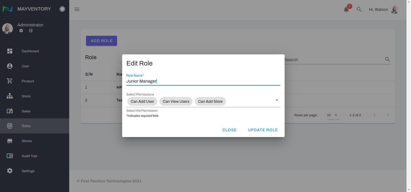 - Edit the role name or permission or both. In our case, we would edit the role name.