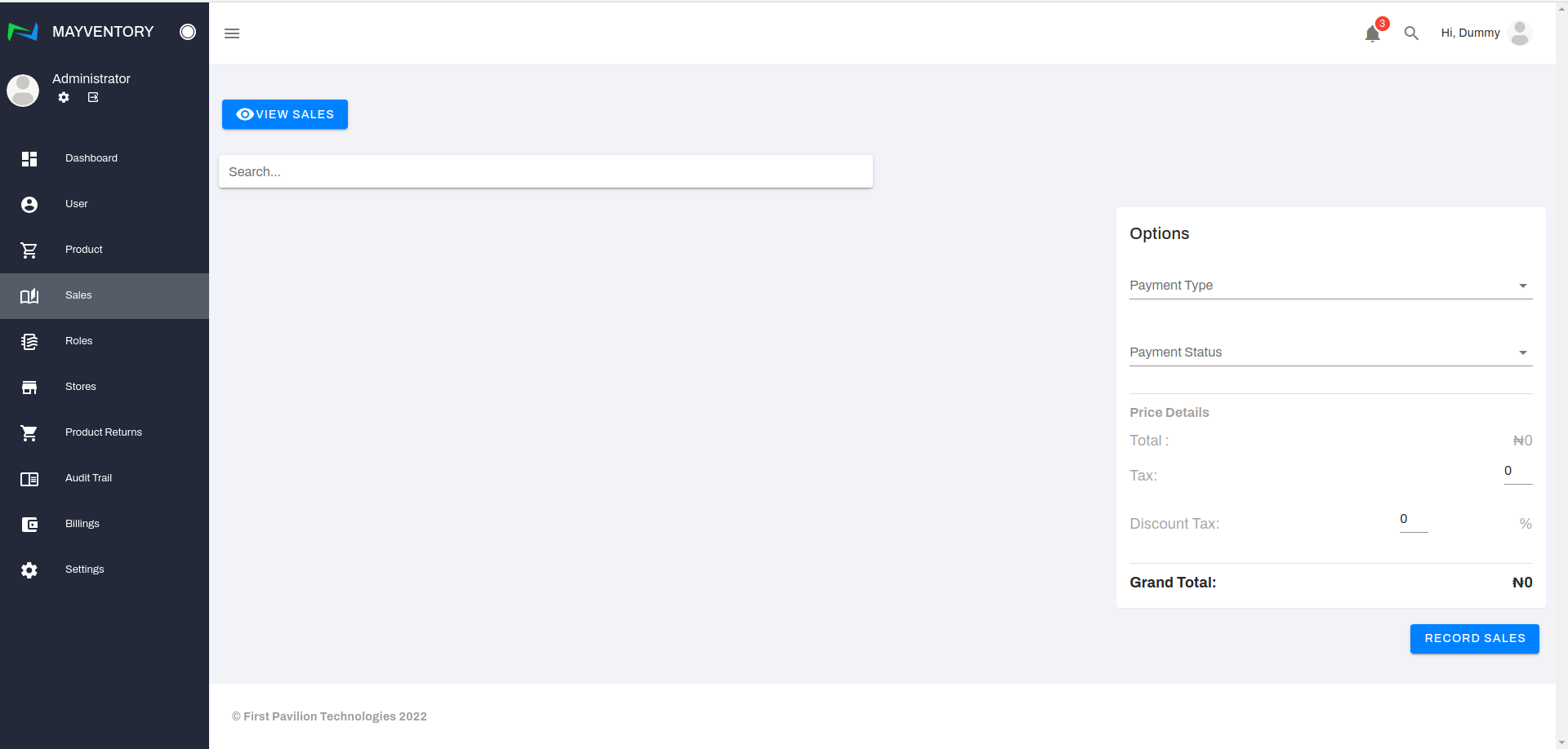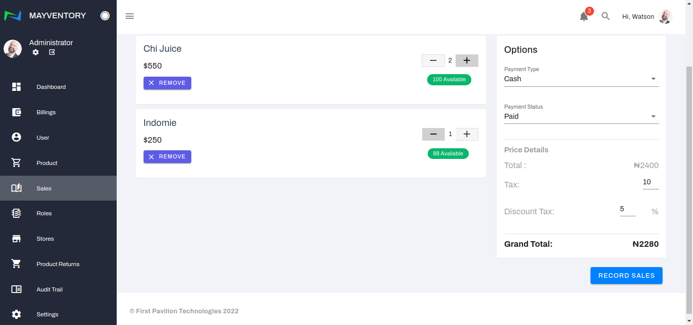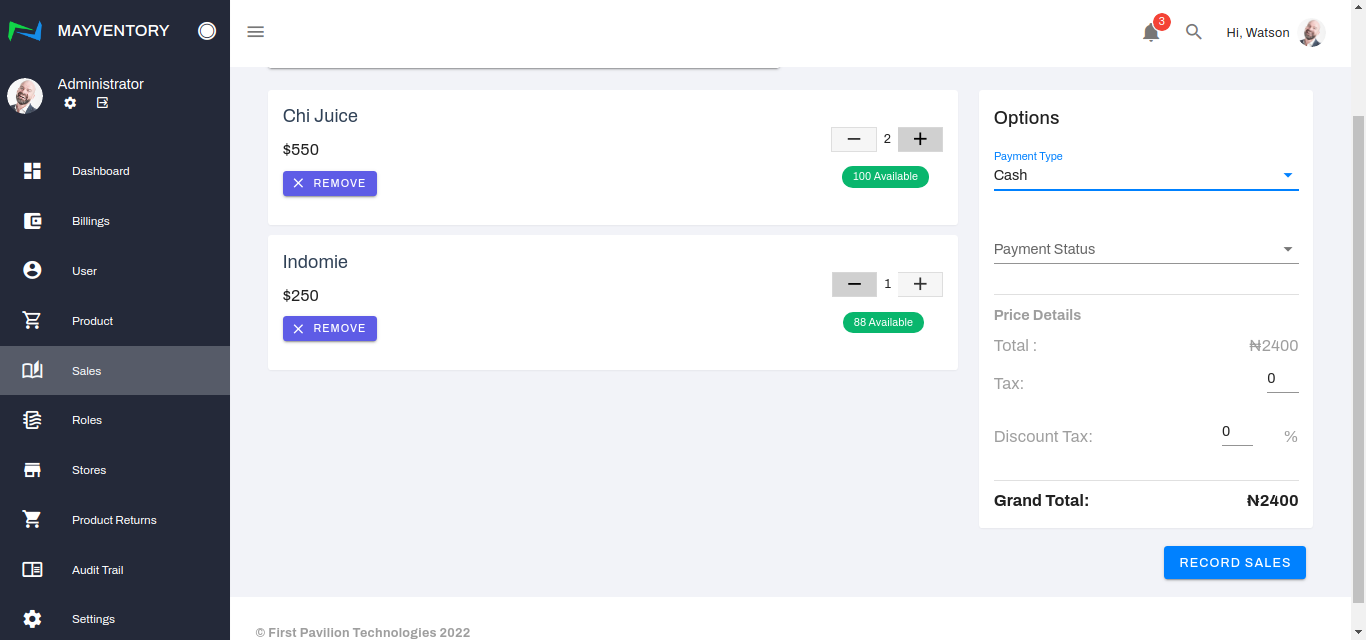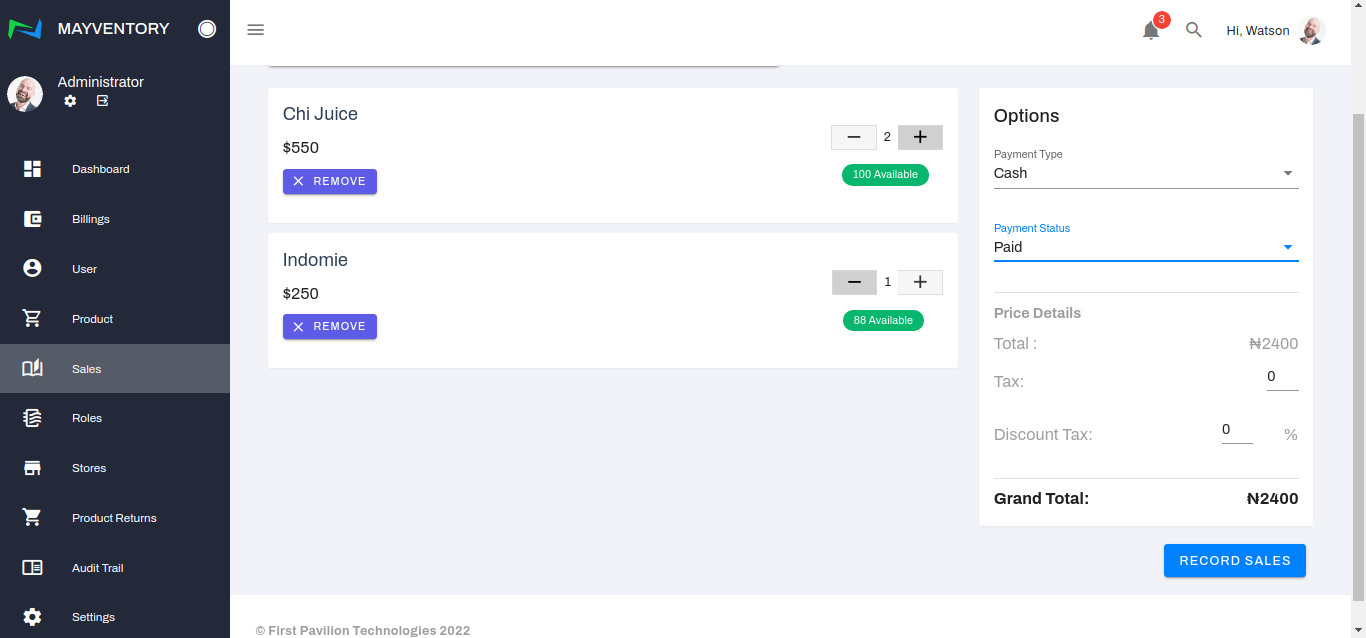 - Once satisfied with all the inputs, click on Record Sales to register the sale.