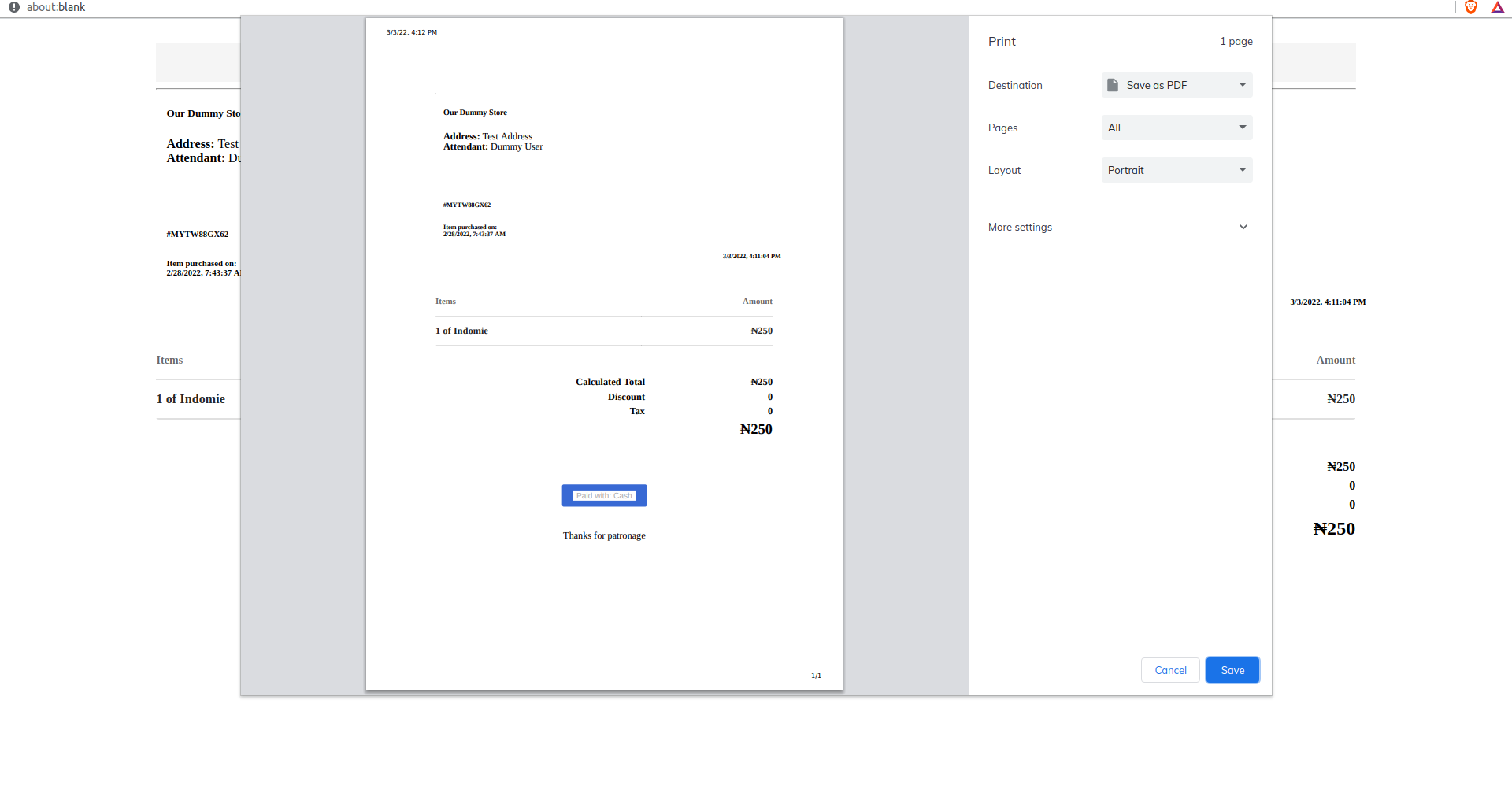 - Click on the Print box and immediately, a browser window opens, displaying a preview of the invoice to be printed. This preview page may slightly differ from browser to browser but for the most part, they contain the same thing.