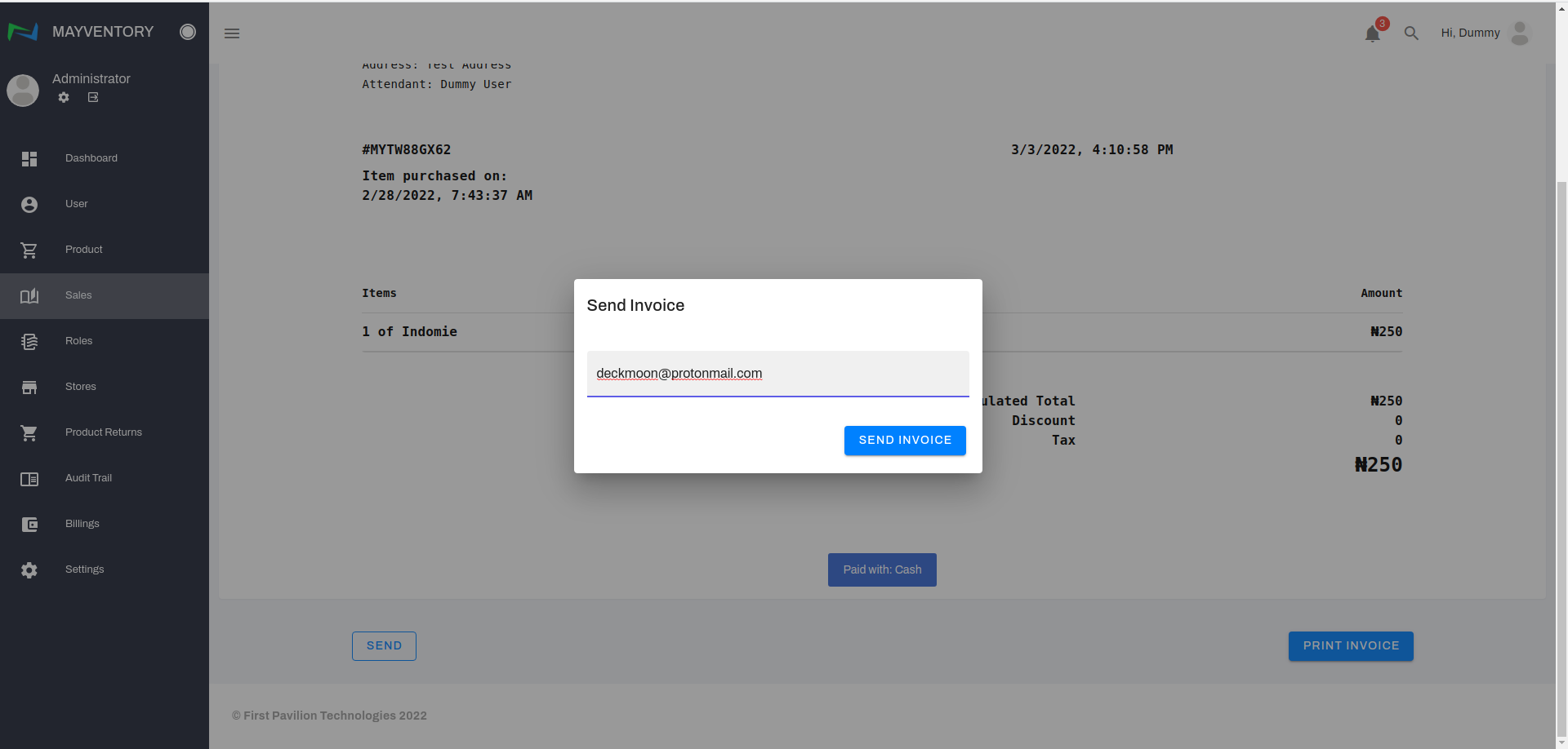 - Enter the email address of the person you want to send the invoice to and click on Send Invoice.