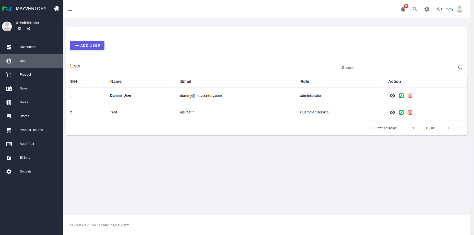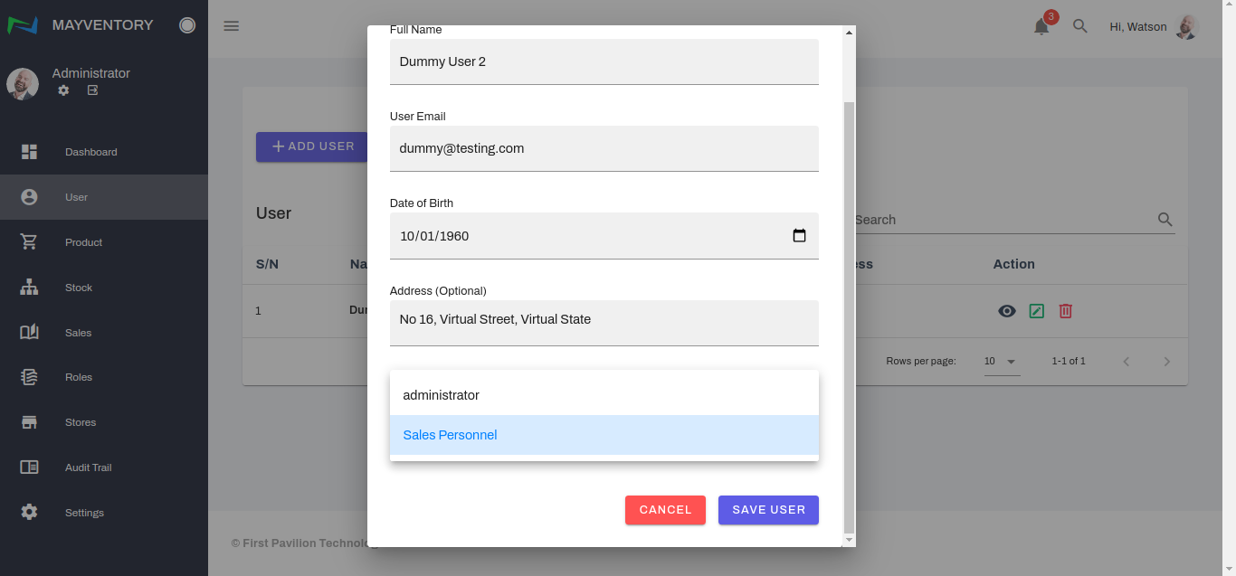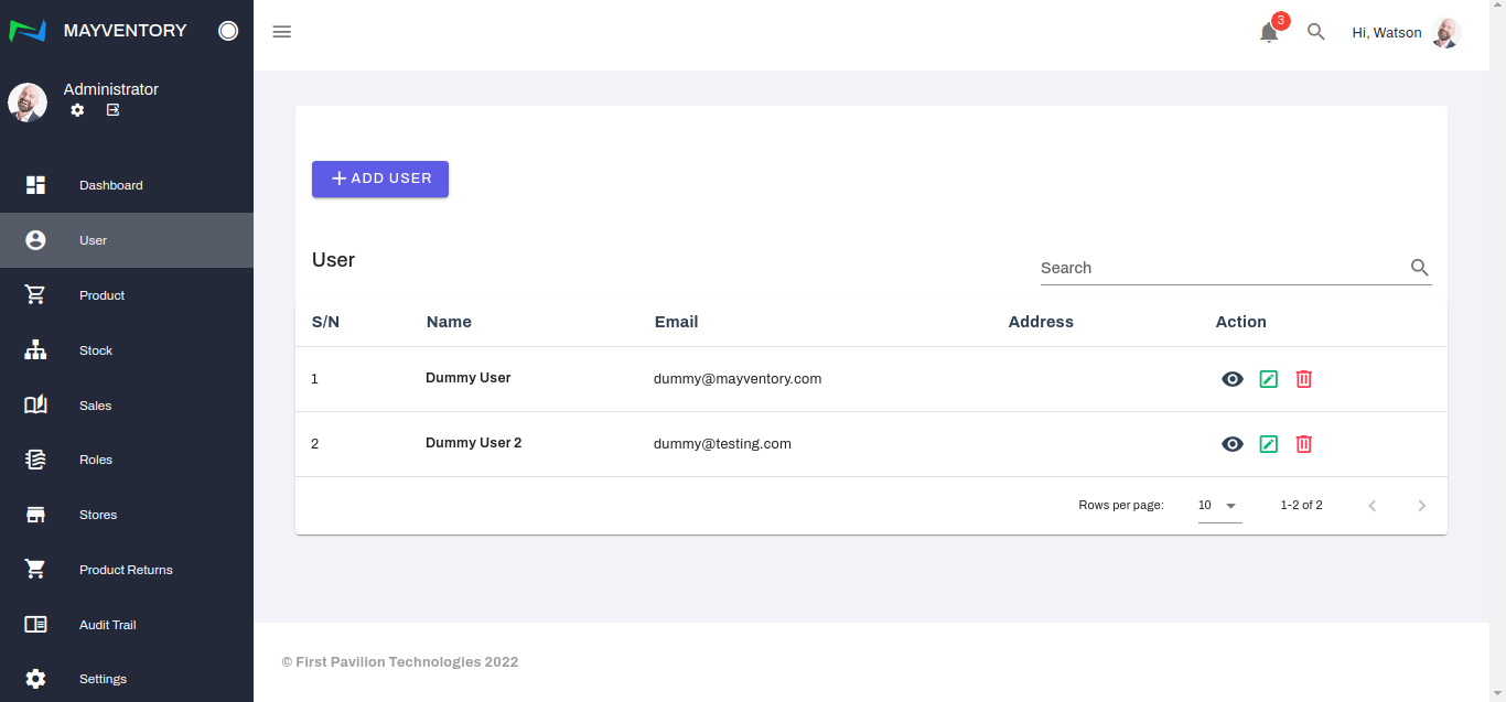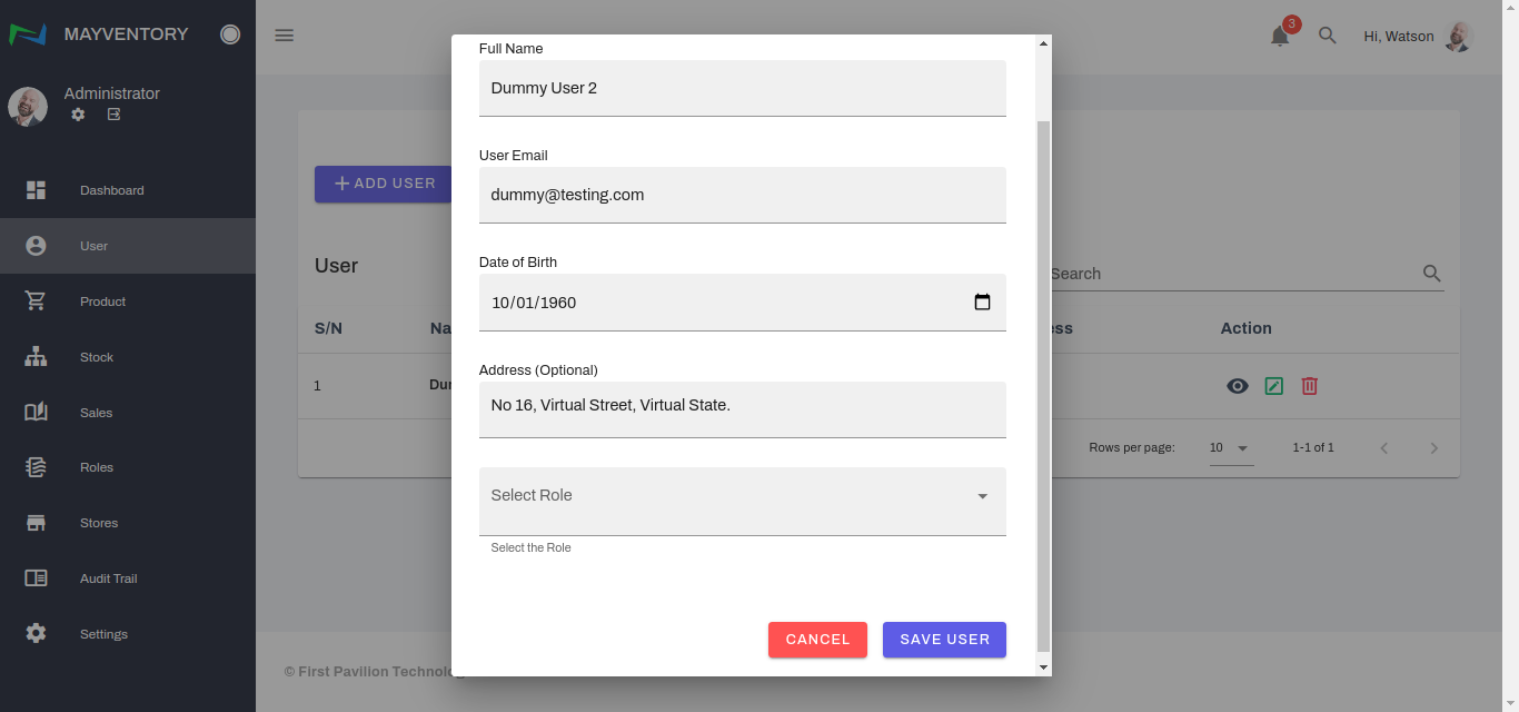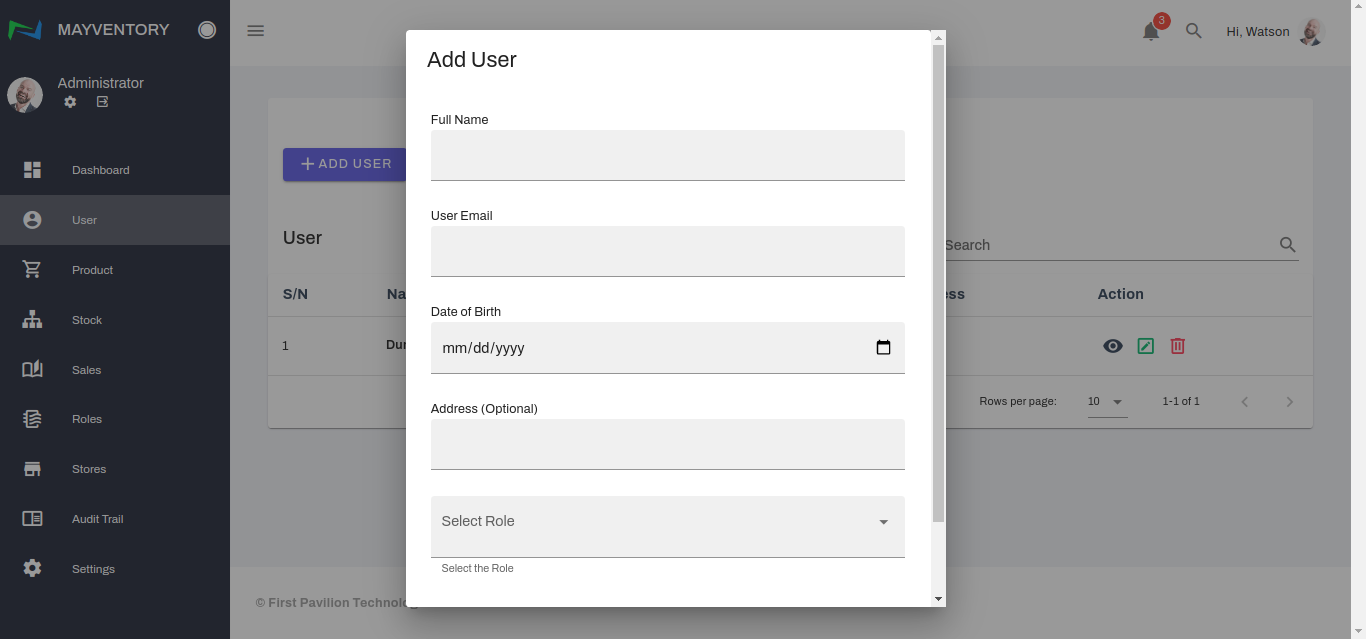 The User page is where you get to add several individuals and employees of your organization and define their roles and functionalities.